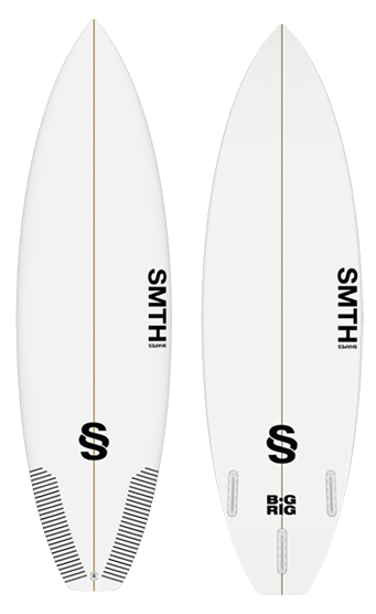 The BigRig as we generally carrying more volume. The wider outline helps hide volume/liters on the stringer with dome top deck towards the rail. From the rail shoulder, we drop off to a down-rail that will engage the face of the wave better.